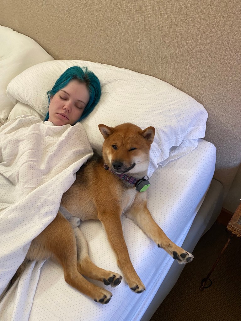 We slept in late today with my little buddy, Nobu. He is the sweetest Shiba. He has slept next to me every night since he was 8 weeks old. I can tell the dogs have missed me even though it was only a couple of days since they last saw me.
