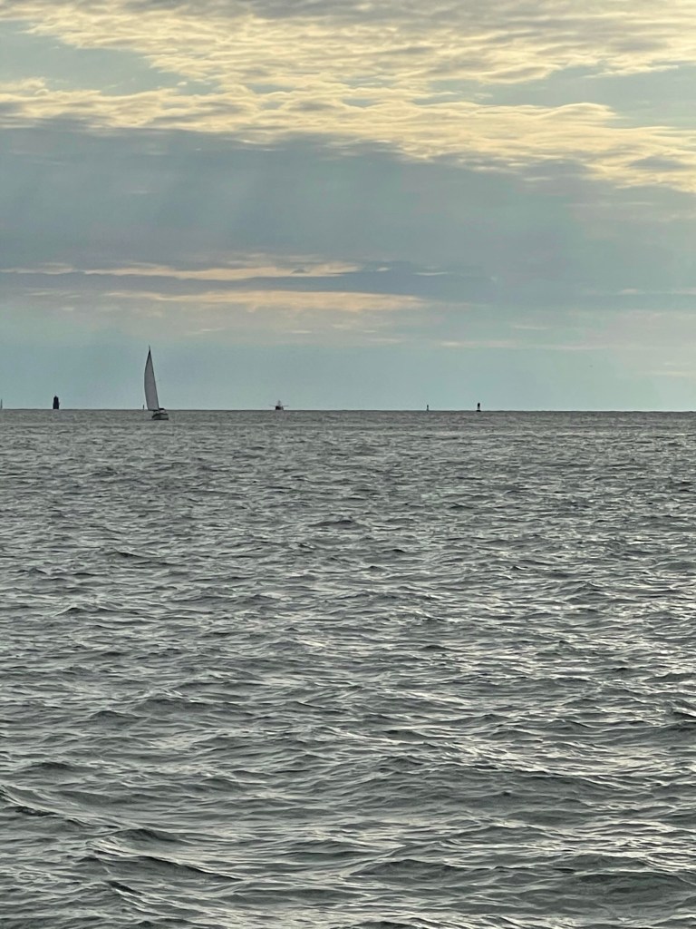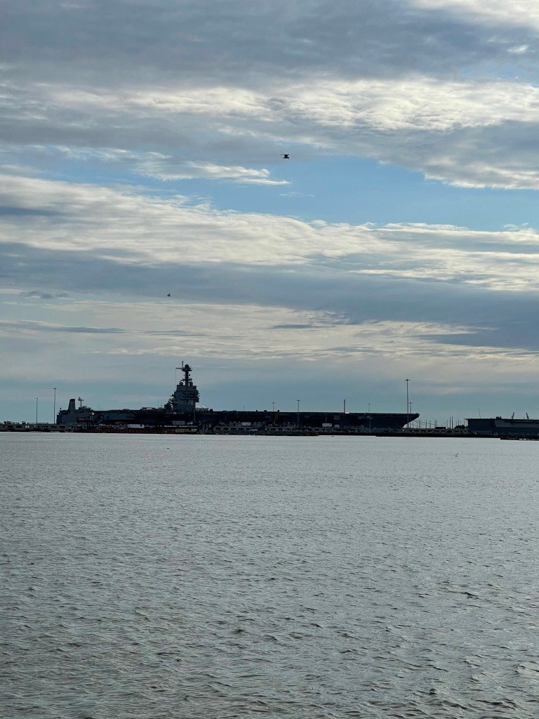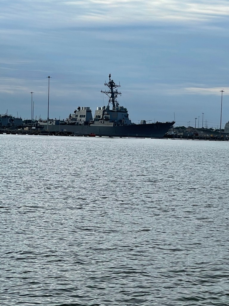 We pulled the anchor up at 6:15 am. We went through Hampton roads and out into the Chesapeake bay. We saw a ton of destroyers and air craft carriers.