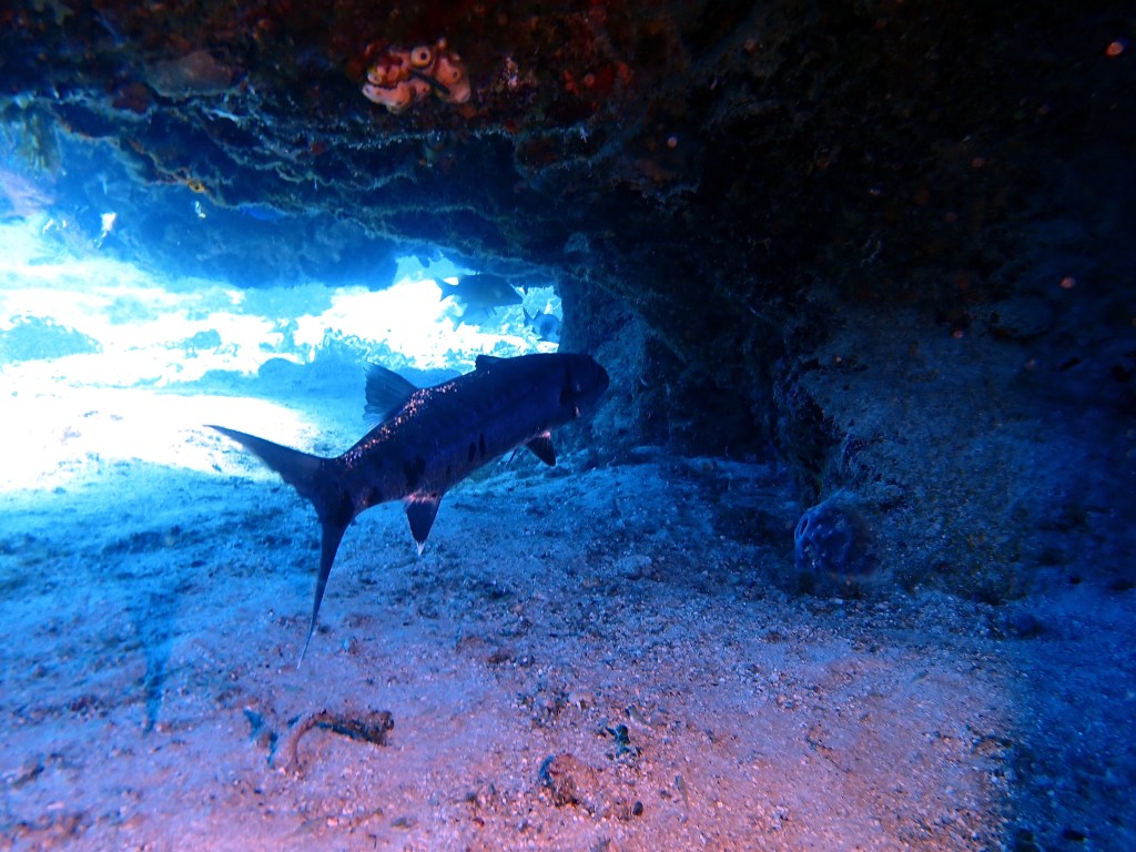 Another beautiful day in paradise. Our first dive was around 65 feet. We went through a cool cave. We saw an adorable sea turtle.